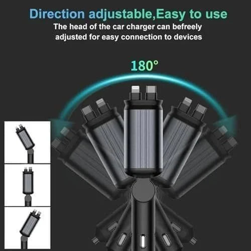 Upgrade your driving experience with this 66W fast car charger, built for speed, safety, and convenience. Featuring dual PD & QC 3.0 USB ports, it powers up your phone, tablet, or GPS in record time. The 4-in-1 retractable design includes built-in USB-C & Lightning cables, eliminating messy cords and keeping your car organized.
